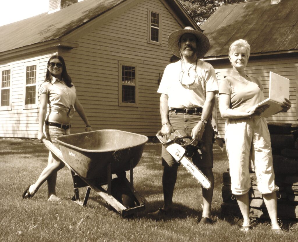 Melia, Dario and Rebecca Coletta recreating a late 19th century photograph of their house.