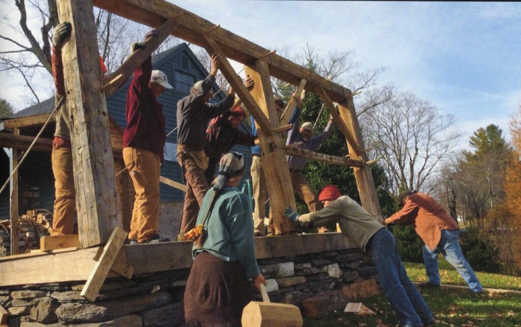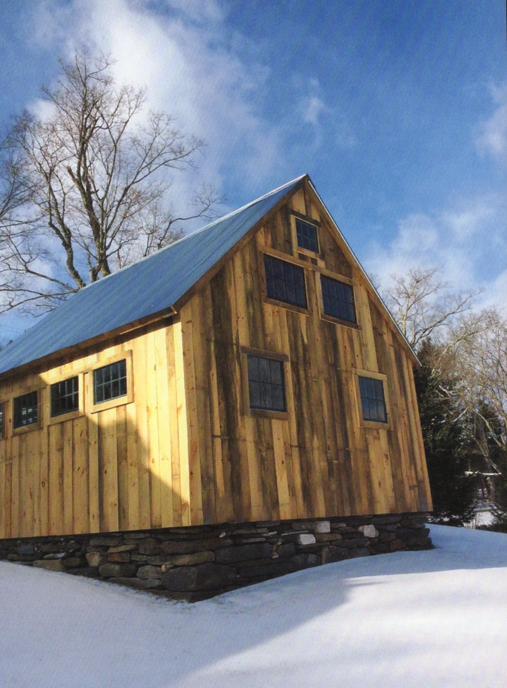 “Shortly before we bought the property, the previous owners had torn down the antique barn, which they considered a hazard, and replaced it with a two-car garage. While the garage was practical, I sorely missed the historic presence and space of the old barn, even though I had never seen it. Always on the lookout for a smaller, antique replacement structure, I was rewarded ten years later with David Kramer gifting me his carriage barn across from his house which sat about 300’ behind the Plainfield Town Hall. With help from Rich Potter in dismantling,. and Sadie Stull and crew in reassembling, the barn was attached to our existing garage, culminating in an old-fashioned barn raising. We had thus restored a bit of the agrarian historical presence that had been missing from 123 Pleasant Street.”