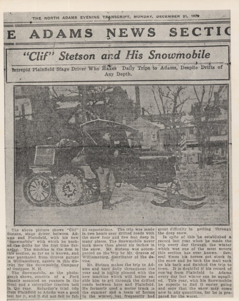 In 1979 Cliff sold the house to the Plainfield Historical Society for $25,000, with the stipulation that he be allowed to live there the rest of his life. Due to failing health, Cliff Stetson moved to a nursing home in Northampton, where he lived until the age of 93. An interview with Cliff is in the book “Old Friends” by novelist Tracy Kidder.
