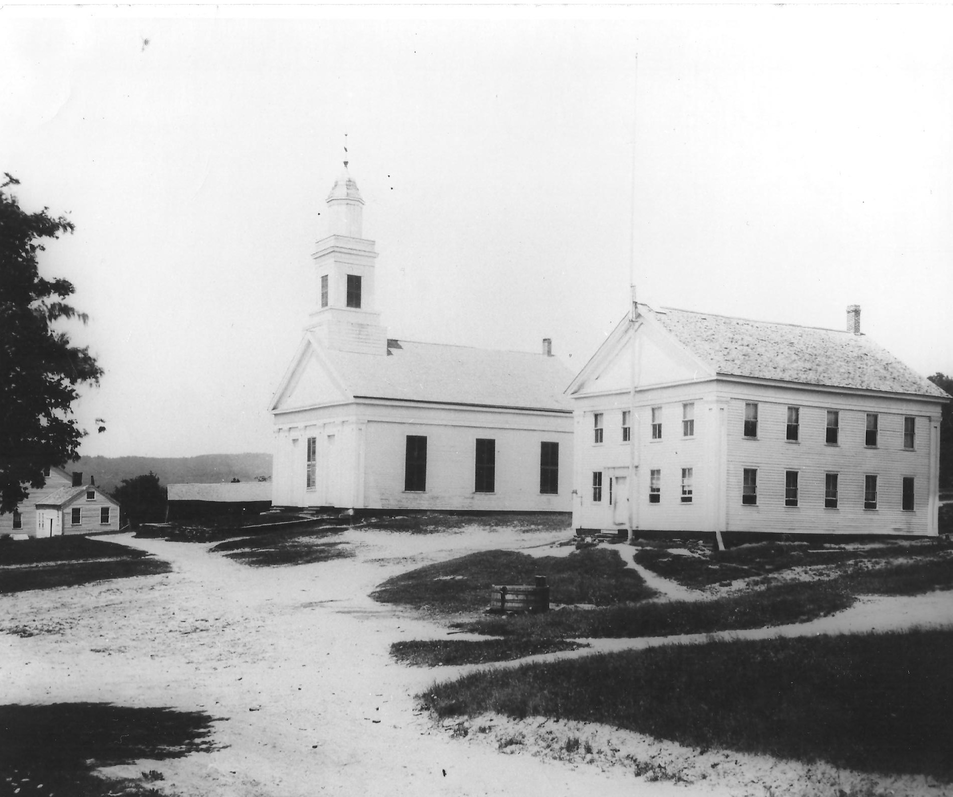Up the road, Simon Burroughs had transformed the Upper Village over the years through selling off pieces of the “common.” By the beginning of the second decade of the 19th century it had contained several stores, a blacksmith shop, gun house, law office and a tavern. Despite all this, in his early 60s, Simon sold out and moved west to Ohio with his family in 1812.32 The Lower Village, dominated by the meeting house and surrounded by its horse and carriage sheds, contained stores, a blacksmith shop, a hat shop dwelling, a school, and eventually a hotel converted from Daniel Streeter’s home on Main Street.